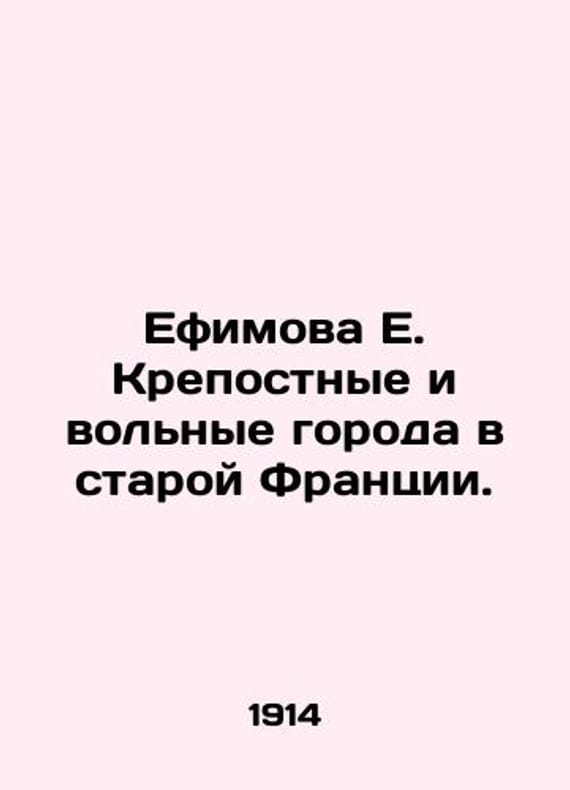 E. Efimovas serfdom and free cities in old France. In Russian /Efimova E. Krepostnye i volnye goroda v staroy Frantsii. 2nd edition. With 19 drawings. M. Edition of the T-va I. N. Kushneryov and K. 1914. 110 p. We have thousands of titles and often several copies of each title may be available. Please feel free to contact us for a detailed description of the copies available. SKUalb2cc58b672033c462.
