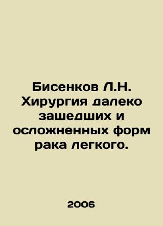 Bisenkov L.N. Surgery for advanced and complicated forms of lung cancer. In Russian /Bisenkov L.N. Khirurgiya daleko zashedshikh i oslozhnennykh form raka legkogo. St. Petersburg Dean 2006 431 pp. We have thousands of titles and often several copies of each title may be available. Please feel free to contact us for a detailed description of the copies available. SKUalb2ccb6939920f62ff.