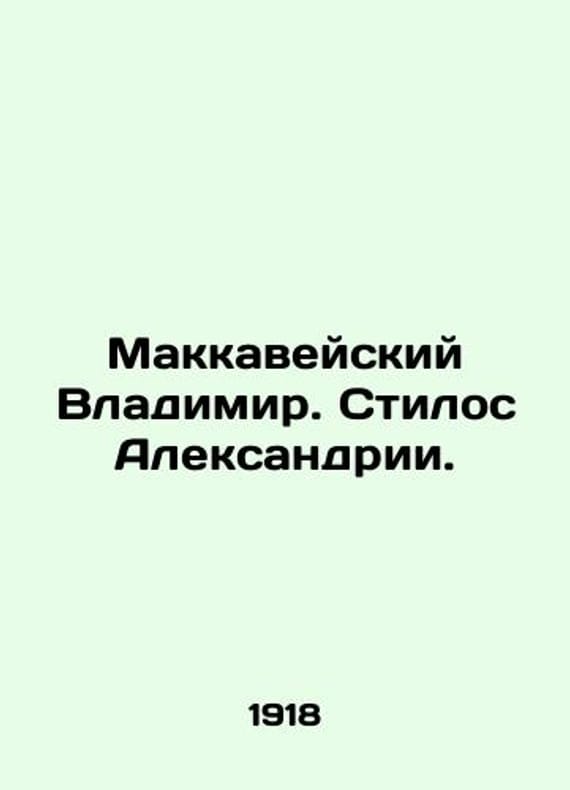 Maccabees Vladimir. Stylos of Alexandria. In Russian /Makkaveyskiy Vladimir. Stilos Aleksandrii. Sonnets and Poems Kiev-Athens 1918, 72 p. We have thousands of titles and often several copies of each title may be available. Please feel free to contact us for a detailed description of the copies available. SKUalb2d3a2d28028a5087.