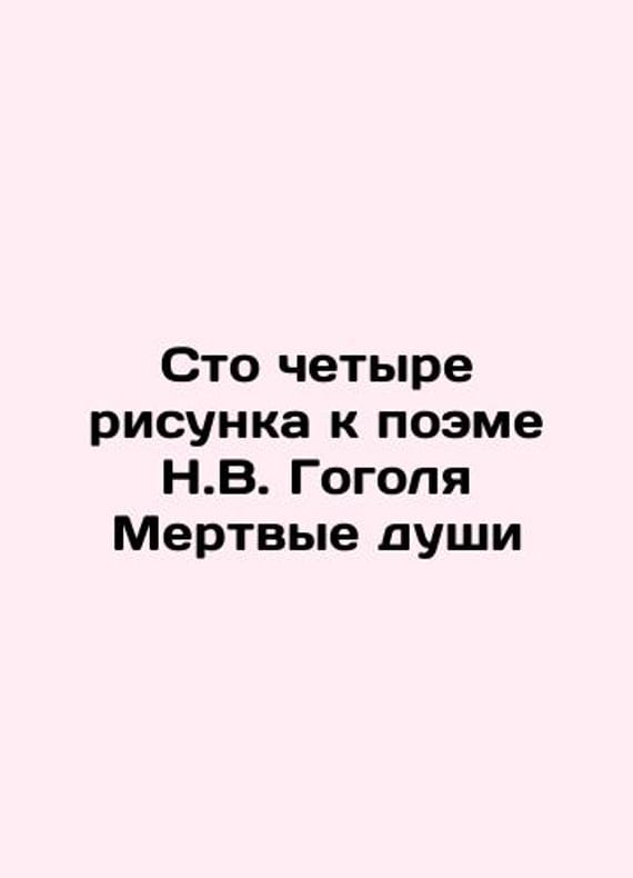 One hundred and four drawings for Gogols poem Dead Souls In Russian /Sto chetyre risunka k poeme N.V. Gogolya Mertvye dushi One hundred and four drawings for Gogols poem Dead Souls. We have thousands of titles and often several copies of each title may be available. Please feel free to contact us for a detailed description of the copies available. SKUalb2d3e2aa0d1cf2c12.