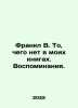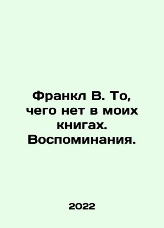 Frankl W. Whats not in my books. Memories. In Russian /Frankl V. To, chego net v moikh knigakh. Vospominaniya. M. Alpins 2nd edition of non-fiction 2022, 196 p. We have thousands of titles and often several copies of each title may be available. Please feel free to contact us for a detailed description of the copies available. SKUalb2d68a9db36fd4d64.