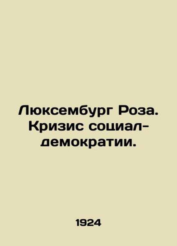 Luxembourg Rosa: The Social Democracy Crisis. In Russian /Lyuksemburg Roza. Krizis sotsial-demokratii. With the attachment of an article by N. Lenin. With a foreword by Klara Zetkin. Translated from German. Moscow Krasnaya Again in 1924. We have thousands of titles and often several copies of each title may be available. Please feel free to contact us for a detailed description of the copies available. SKUalb2d7f3456a95fee90.
