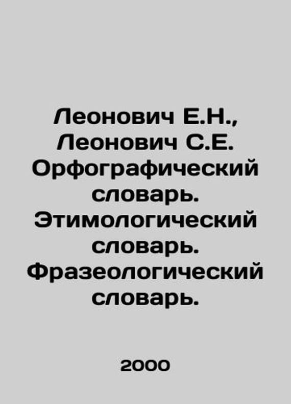 Leonovich E.N., Leonovich S.E. Spelling Dictionary. Etymological Dictionary. Phraseological Dictionary. In Russian /Leonovich E.N., Leonovich S.E. Orfograficheskiy slovar. Etimologicheskiy slovar. Frazeologicheskiy slovar. Manual for Primary School Pupils. M. Terra 2000. We have thousands of titles and often several copies of each title may be available. Please feel free to contact us for a detailed description of the copies available. SKUalb2d94eb72d9a3830d.