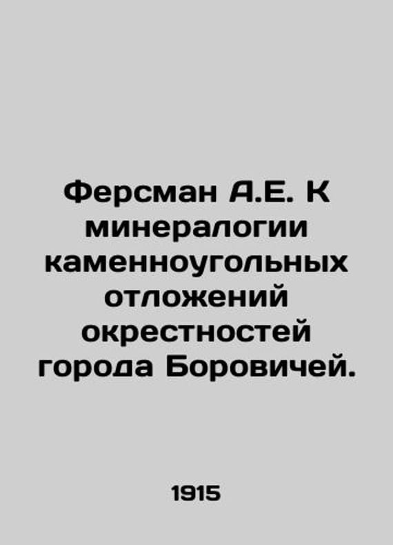 Fersman A.E. K mineralogy of coal deposits near Borovichi. In Russian /Fersman A.E. K mineralogii kamennougolnykh otlozheniy okrestnostey goroda Borovichey. Extract from the Izvestia of the Imperial Academy of Sciences. Petrograd. Type. Imp. AS. 1915. We have thousands of titles and often several copies of each title may be available. Please feel free to contact us for a detailed description of the copies available. SKUalb2db16ed02c6c7e86.
