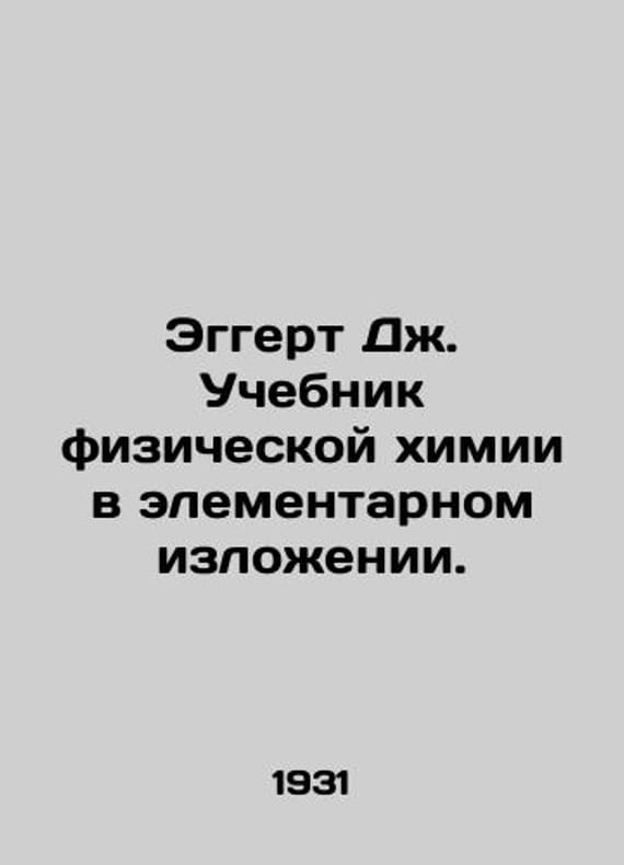 Eggert J. Basic Physical Chemistry Textbook. In Russian /Eggert Dzh. Uchebnik fizicheskoy khimii v elementarnom izlozhenii. M., L. GSTI 1931. We have thousands of titles and often several copies of each title may be available. Please feel free to contact us for a detailed description of the copies available. SKUalb2dbc649a7db491f6.