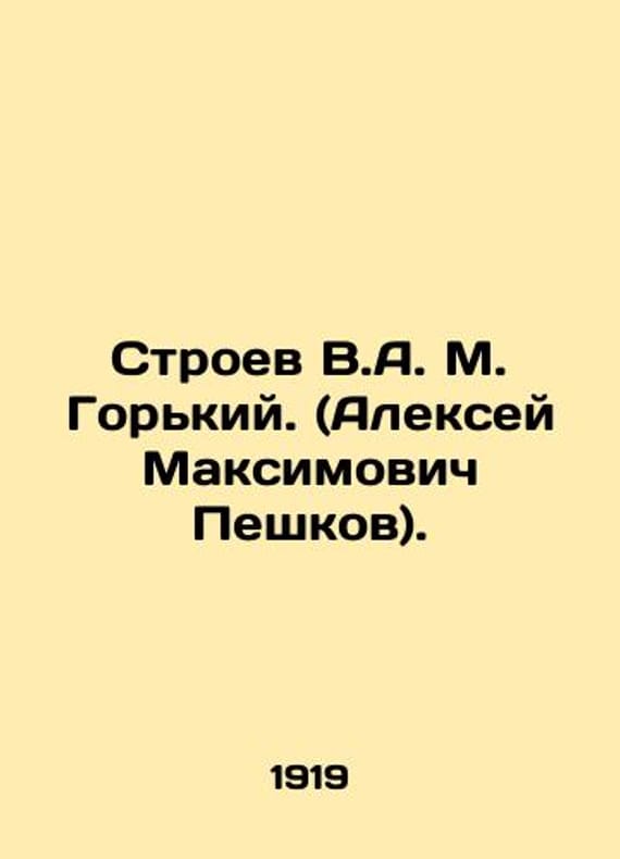 Stroev V.A. M. Gorky. (Alexey Maksimovich Peshkov). In Russian /Stroev V.A. M. Gorkiy. (Aleksey Maksimovich Peshkov). To the 50th anniversary of the birth of 14 March 1869-14 March 1919. St. Petersburg, 1919. We have thousands of titles and often several copies of each title may be available. Please feel free to contact us for a detailed description of the copies available. SKUalb2dca904622b2471b.
