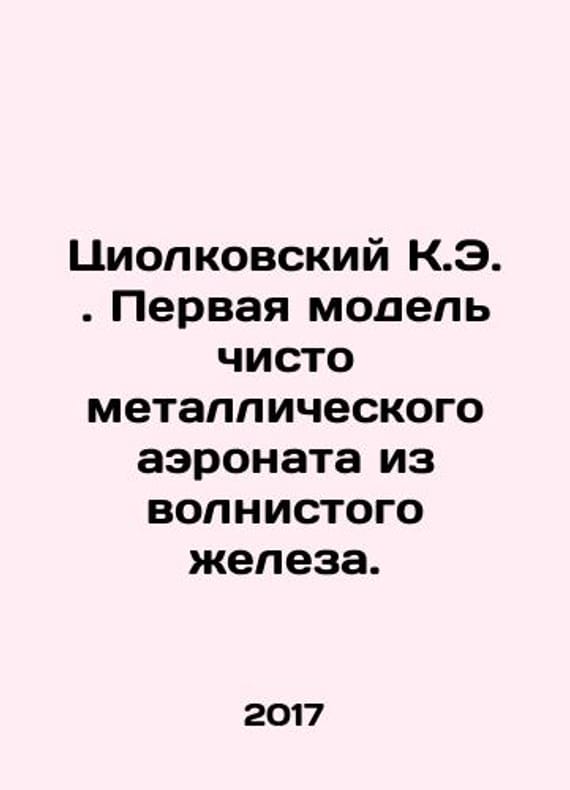 Tsiolkovsky K.E. The first model of an all-metal aeronate made of undulating iron. In Russian /Tsiolkovskiy K.E. Pervaya model chisto metallicheskogo aeronata iz volnistogo zheleza. Reprint M. Good Thought 2017. We have thousands of titles and often several copies of each title may be available. Please feel free to contact us for a detailed description of the copies available. SKUalb2e23bb4751220108.