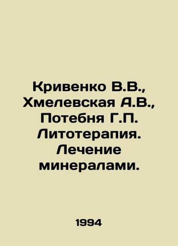 Krivenko V.V., Khmelevskaya A.V., Potebnya G.P. Litotherapy. Treatment with minerals. In Russian /Krivenko V.V., Khmelevskaya A.V., Potebnya G.P. Litoterapiya. Lechenie mineralami. Color photo of Sverdlov A.V., Tunitsky E.A., Sazonov V.N. Composition, design and layout of Abelin S.G. M. Pedagogy-Press. 1994. 224s. We have thousands of titles and often several copies of each title may be available. Please feel free to contact us for a detailed description of the copies available. SKUalb2e9843c1bdea968f.