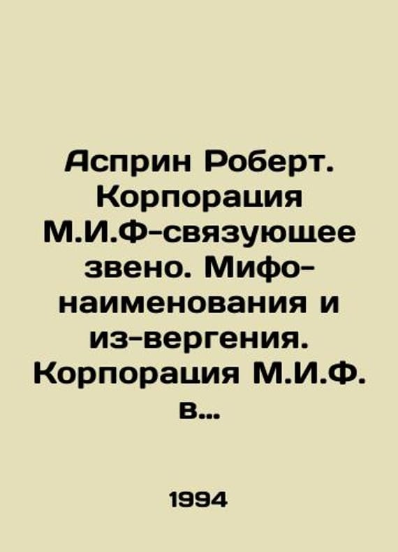 Asprin Robert. The M.I.F. Corporation is the link between Mytho-Names and Because of Vergenia. The M.I.F. Corporation in Action. In Russian /Asprin Robert. Korporatsiya M.I.F-svyazuyushchee zveno. Mifo-naimenovaniya i iz-vergeniya. Korporatsiya M.I.F. v deystvii. Collectible Phanetastics. 1994. We have thousands of titles and often several copies of each title may be available. Please feel free to contact us for a detailed description of the copies available. SKUalb2e9d0f0b1b01bf13.