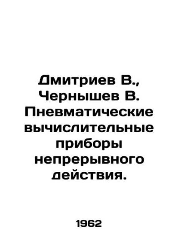 Dmitriev V., Chernyshev V. Pneumatic continuous action computing devices. In Russian /Dmitriev V., Chernyshev V. Pnevmaticheskie vychislitelnye pribory nepreryvnogo deystviya. Library on Automation 52 Gosenergopublish 1962, 96 p. We have thousands of titles and often several copies of each title may be available. Please feel free to contact us for a detailed description of the copies available. SKUalb2edb462eb34543c2.