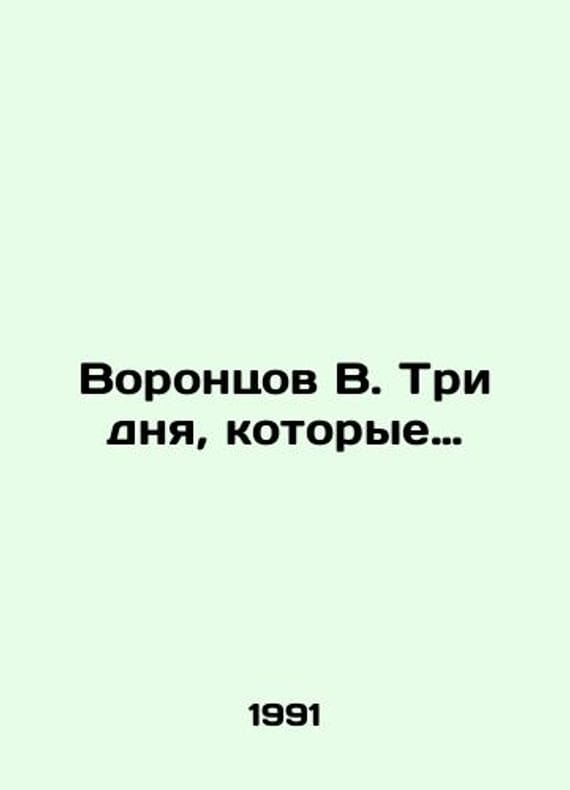 Vorontsov V. The Three Days That Come In Russian /Vorontsov V. Tri dnya, kotorye Notes from the scene of the events of August 19-21, 1991, eyewitness and participant. M Industrial Academy 1991, 104 p. We have thousands of titles and often several copies of each title may be available. Please feel free to contact us for a detailed description of the copies available. SKUalb2efab6b3125ed9f9.