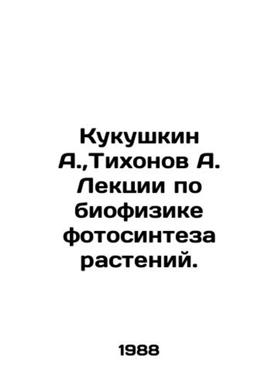 Kukushkin A., Tikhonov A. Lectures on biophysics of plant photosynthesis. In Russian /Kukushkin A., Tikhonov A. Lektsii po biofizike fotosinteza rasteniy.Moscow State University 1988.We have thousands of titles and often several copies of each title may be available. Please feel free to contact us for a detailed description of the copies available. SKUalb2f764d3e8d690daf.