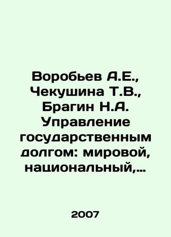 Vorobyov A.E., Chekushina T.V., Bragin N.A. Public Debt Management: Global, National, Regional, and Corporate Aspects In Russian /Vorobev A.E., Chekushina T.V., Bragin N.A. Upravlenie gosudarstvennym dolgom: mirovoy, natsionalnyy, regionalnyy i korporativnyy aspekty Ryazan Regional Printing House 2007, 546 p. We have thousands of titles and often several copies of each title may be available. Please feel free to contact us for a detailed description of the copies available. SKUalb2f8db3dcbc478948.