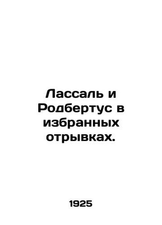Lassalle and Rodbertus in selected passages. In Russian /Lassal i Rodbertus v izbrannykh otryvkakh. Moscow and Leningrad State Publishing House 1925. We have thousands of titles and often several copies of each title may be available. Please feel free to contact us for a detailed description of the copies available. SKUalb2fa0ae70586d4fe0.