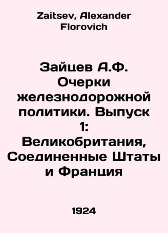 Zaitsev A.F. Essays on Railway Policy. Issue 1: United Kingdom, United States, and France In Russian /Zaytsev A.F. Ocherki zheleznodorozhnoy politiki. Vypusk 1: Velikobritaniya, Soedinennye Shtaty i Frantsiya M Transit of the Peoples Commissariat of Railways 1924 250c. We have thousands of titles and often several copies of each title may be available. Please feel free to contact us for a detailed description of the copies available. SKUalb2faf7da57af1fdb8.