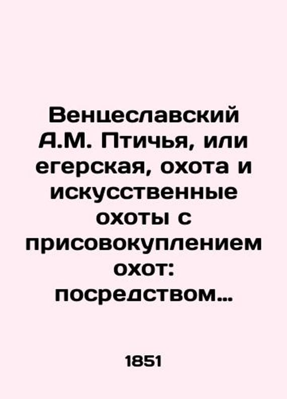 Venceslavsky A.M. Bird or game hunting and artificial hunting with the addition of hunting: by round-ups with hounds and phyllis hunting of birds of prey. In Russian (ask us if in doubt)/Ventseslavskiy A.M. Ptichya ili egerskaya okhota i iskusstvennye okhoty s prisovokupleniem okhot: posredstvom oblav s zagonshchikami i okhoty s filinom na khishchnykh ptits. Short description: In Russian (ask us if in doubt).St. Petersburg. Edition of the bookseller V.Polyakov. 1851. 166 p. il. 15x18 cm. We have thousands of titles and often several copies of each title may be available. Please feel free to contact us for a detailed description of the copies available. SKUalb2fd429751fe7f4ed