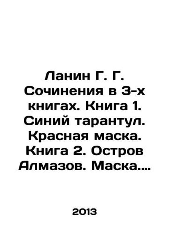 Lanin G. G. Works in 3 books. Book 1. Blue tarantula. Red mask. Book 2. Diamond Island. Mask. Book 3. Jellyfish. Crimson doll. Nonna. In Russian /Lanin G. G. Sochineniya v 3-kh knigakh. Kniga 1. Siniy tarantul. Krasnaya maska. Kniga 2. Ostrov Almazov. Maska. Kniga 3. Meduza. Bagrovaya kukla. Nonna. Series: Retro Library of Adventure and Science Fiction. M. Prestige Book. 2013, 2015 400 p. We have thousands of titles and often several copies of each title may be available. Please feel free to contact us for a detailed description of the copies available. SKUalb2fe8eb031d0bdb6a.