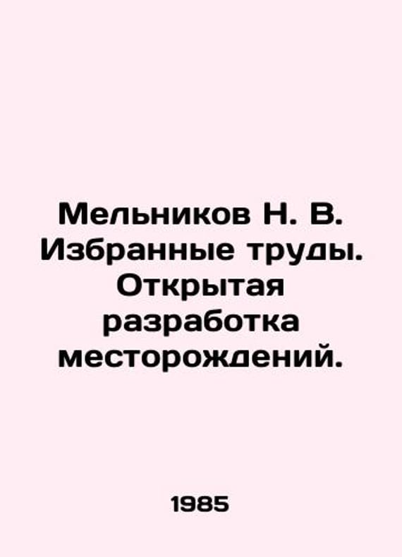 Melnikov N. V. Selected works. Open mining of deposits. In Russian /Melnikov N. V. Izbrannye trudy. Otkrytaya razrabotka mestorozhdeniy. M. Science 1985. 279 p. We have thousands of titles and often several copies of each title may be available. Please feel free to contact us for a detailed description of the copies available. SKUalb30412ee16e1455ac.