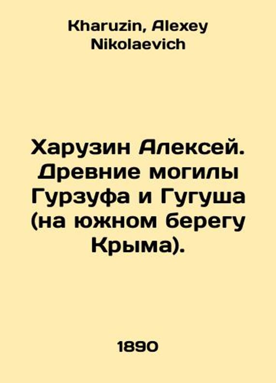 Alexey Kharuzin. Ancient graves of Gurzuf and Gugush (on the southern shore of Crimea). In Russian /Kharuzin Aleksey. Drevnie mogily Gurzufa i Gugusha (na yuzhnom beregu Kryma). M. Typography of T. A. Levenson and Co. 1890, art. 102, Table 4 Alexey Nikolaevich Kharuzin (1864-1932), Russian ethnographer and anthropologist, statesman. We have thousands of titles and often several copies of each title may be available. Please feel free to contact us for a detailed description of the copies available. SKUalb304bace73cbc43a1.