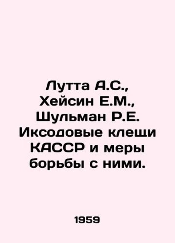 Lutta A.S., Heisin E.M., Shulman R.E. CASSR Ixode Ticks and Control Measures. In Russian /Lutta A.S., Kheysin E.M., Shulman R.E. Iksodovye kleshchi KASSR i mery borby s nimi.Karelian Branch of the Academy of Sciences of the USSR. Petrozavodsk State University of the Karelian ASSR 1959.We have thousands of titles and often several copies of each title may be available. Please feel free to contact us for a detailed description of the copies available. SKUalb30688d4b4263c8bb.