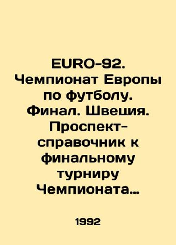 EURO-92. European football championship. Final. Sweden. A brochure for the 1992 European football championship final. SWEDEN92. Stockholm-Gothenburg-Norkoping-Malme. 10.06-26.06. In Russian (ask us if in doubt)/EURO-92. Chempionat Evropy po futbolu. Final. Shvetsiya. Prospekt-spravochnik k finalnomu turniru Chempionata Evropy po futbolu 1992 goda. SWEDEN92. Stokgolm-Geteborg-Norcheping-Malme. 10.06-26.06.Chief Editor-Yuri Pilipenko. Authors-compilers: Sergei Dadygin Sergei Klopov Yaroslav Mikulak Vladimir Tolstoy. Executive Editor Irina Repina. Design-Alexander Klishchenko Andrei Chizhov. Moscow. Interview. 1992. 96 p.. SKUalb306a94bfbe82f9f5.