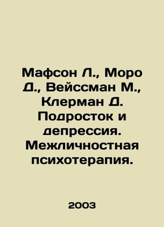 Mafson L., Moreau D., Weissman M., Clerman D. Adolescence and Depression. Interpersonal Psychotherapy. In Russian /Mafson L., Moro D., Veyssman M., Klerman D. Podrostok i depressiya. Mezhlichnostnaya psikhoterapiya. Series: How to Become a Psychologist. Moscow, Eksmo, 2003. 320c. We have thousands of titles and often several copies of each title may be available. Please feel free to contact us for a detailed description of the copies available. SKUalb30826fedf486b9ff.