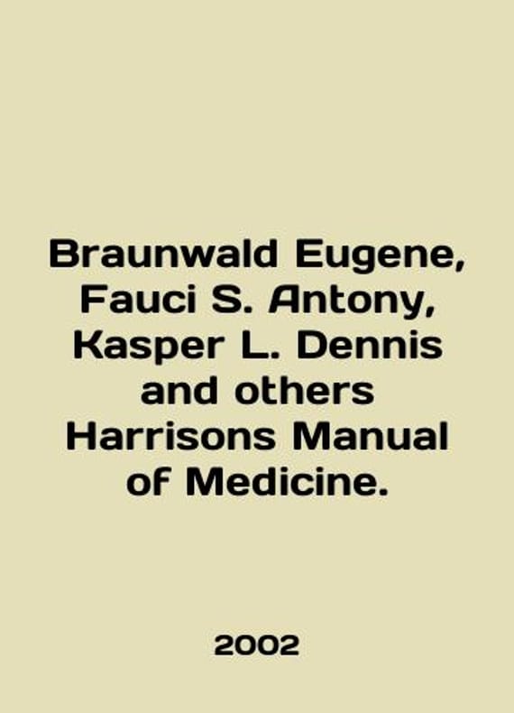Braunwald Eugene, Fauci S. Anthony, Kasper L. Dennis and others Harrisons Manual of Medicine. In English /Braunwald Eugene, Fauci S. Antony, Kasper L. Dennis and others Harrisons Manual of Medicine. In English, New York McGraw-Hill 2002, 1022 p. We have thousands of titles and often several copies of each title may be available. Please feel free to contact us for a detailed description of the copies available. SKUalb30cc5f0188b4d3ef.
