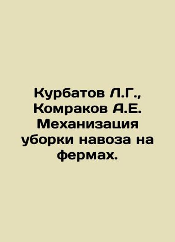 Kurbatov L.G., Komrakov A.E. Mechanization of manure harvesting on farms. In Russian /Kurbatov L.G., Komrakov A.E. Mekhanizatsiya uborki navoza na fermakh. Kurbatov L.G., Komrakov A.E. Mechanization of manure harvesting on farms. We have thousands of titles and often several copies of each title may be available. Please feel free to contact us for a detailed description of the copies available. The delivery of this book might be delayed beyond the usual timeframe due to extended processing and preparation before shipment, and faster shipping opSKUalb310263a71fa53df6