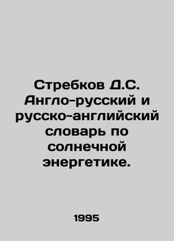 D.S. Strebkov English-Russian and Russian-English Dictionary of Solar Energy. In Russian /Strebkov D.S. Anglo-russkiy i russko-angliyskiy slovar po solnechnoy energetike. About 12,000 M. Rousseau terms of 1995, 304s. We have thousAnds of titles And often several copies of each title may be available. Please feel free to contact us for a detailed description of the copies available. SKUalb311d95e5ff200032.