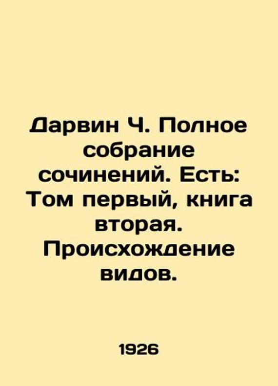 Darwin C. A complete collection of essays. There is: Volume One, Book Two. The Origin of Species. In Russian /Darvin Ch. Polnoe sobranie sochineniy. Est: Tom pervyy, kniga vtoraya. Proiskhozhdenie vidov. M. State Publishing House 1926. We have thousands of titles and often several copies of each title may be available. Please feel free to contact us for a detailed description of the copies available. SKUalb3181e11990e1de6e.