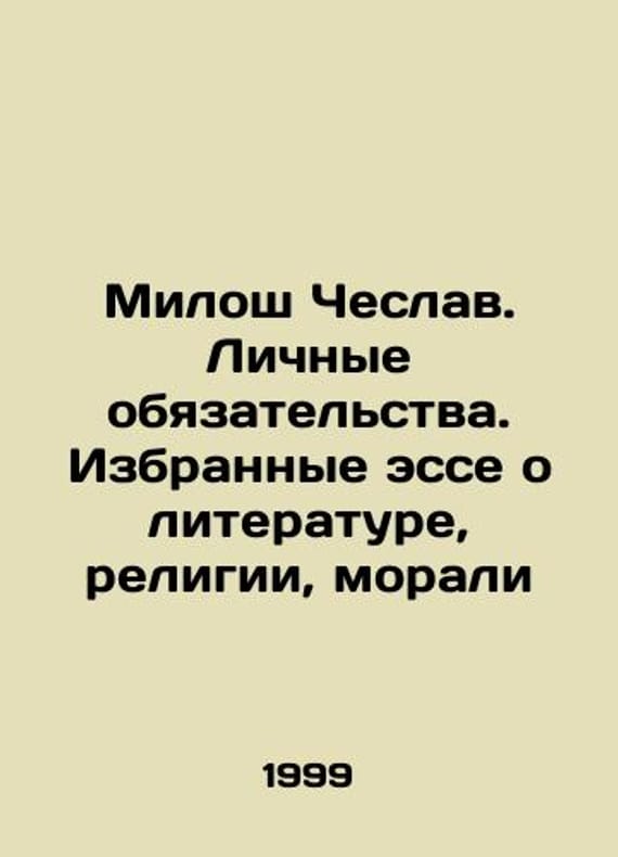 Milos Czeslaw. Personal Commitments. Selected Essays on Literature, Religion, Morals In Russian /Milosh Cheslav. Lichnye obyazatelstva. Izbrannye esse o literature, religii, morali Translated from Polish, English, French and Comment by B. Dubina M Intellectual Book House 1999. We have thousands of titles and often several copies of each title may be available. Please feel free to contact us for a detailed description of the copies available. SKUalb31c0c2582ea2b76a.