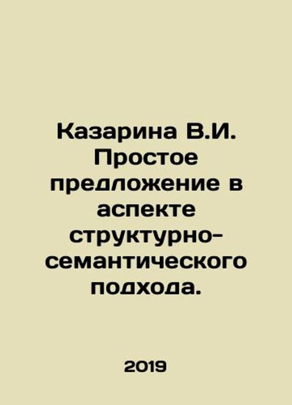 Kazarina V.I. Simple sentence from the point of view of the structural-semantic approach. In Russian /Kazarina V.I. Prostoe predlozhenie v aspekte strukturno-semanticheskogo podkhoda. Flints Moscow 2019. We have thousands of titles and often several copies of each title may be available. Please feel free to contact us for a detailed description of the copies available. SKUalb31dd6f0b2172779e.