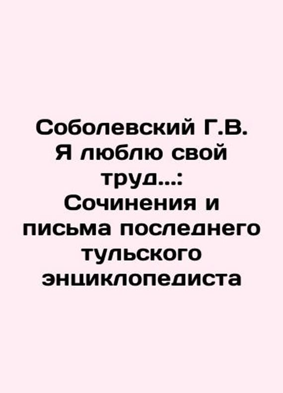 G.V. Sobolevsky I love my work.: Works and Letters of the Last Tula Encyclopedist In Russian /Sobolevskiy G.V. Ya lyublyu svoy trud.: Sochineniya i pisma poslednego tulskogo entsiklopedistaSeries: Tula Writers of the 18th-early 20th Centuries Moscow Past 2023. 148We have thousands of titles and often several copies of each title may be available. Please feel free to contact us for a detailed description of the copies available. SKUalb31fe4301afbde6fc.