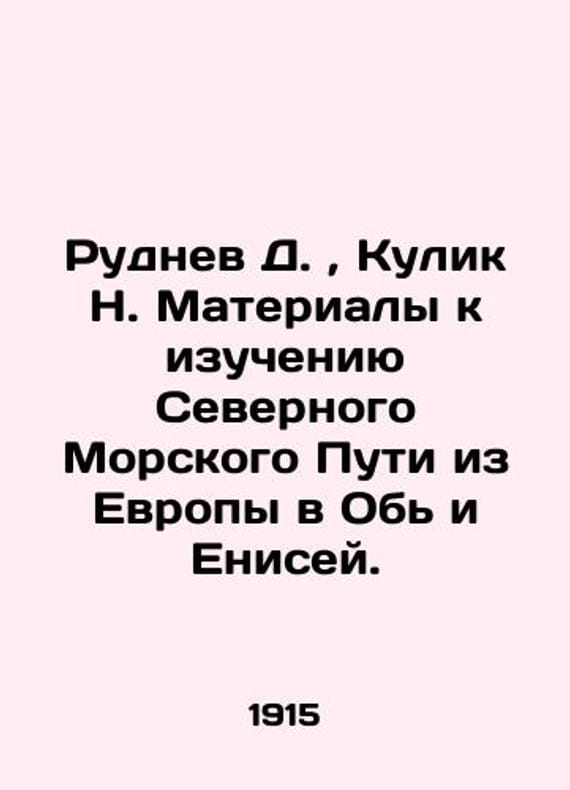 Rudnev D. Kulik N. Materials for the study of the Northern Sea Route from Europe to Ob and Yenisei. In Russian (ask us if in doubt)/Rudnev D. Kulik N. Materialy k izucheniyu Severnogo Morskogo Puti iz Evropy v Ob i Enisey. Petrograd type. A. E. Collins 1915. 128 p. We have thousands of titles and often several copies of each title may be available. Please feel free to contact us for a detailed description of the copies available. SKUalb3254724142371ff0