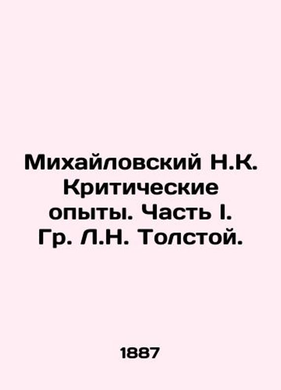 Mikhailovsky N.K. Critical Experiments. Part I. G. L. N. Tolstoy. In Russian /Mikhaylovskiy N.K. Kriticheskie opyty. Chast I. Gr. L.N. Tolstoy. The Gum and the Gum, by L.N. Tolstoy. Ten Years Later. St. Petersburg: The Print of S.P. Yakovlev, 1887, 196 p. We have thousands of titles and often several copies of each title may be available. Please feel free to contact us for a detailed description of the copies available. SKUalb3263f9bab1b1e1a5.