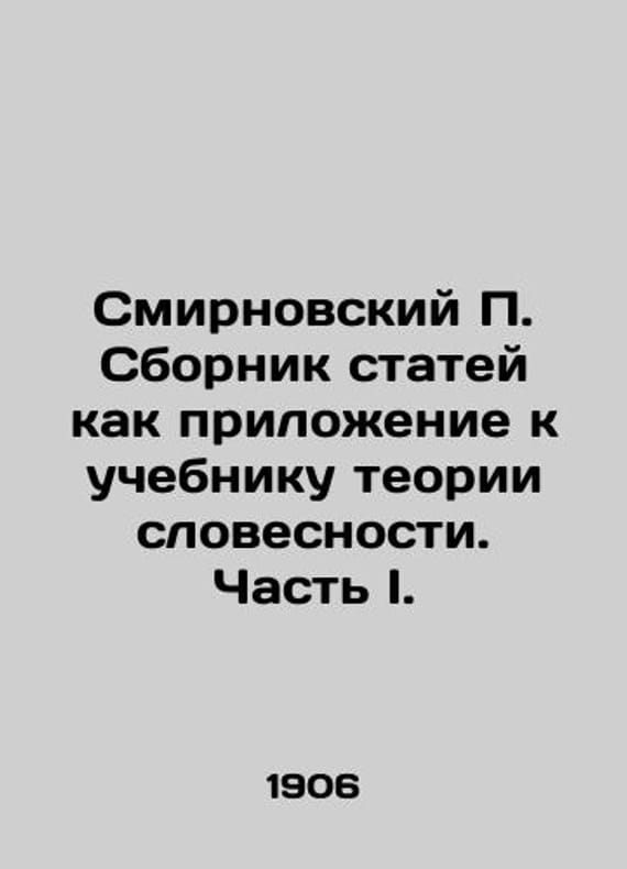 Smirnovsky The collection of articles as an appendix to the textbook of theory of words. Part I. In Russian /Smirnovskiy Sbornik statey kak prilozhenie k uchebniku teorii slovesnosti. Chast I. Sixth edition. Moscow 1906. We have thousands of titles and often several copies of each title may be available. Please feel free to contact us for a detailed description of the copies available. SKUalb326a36bbe3dd03ac.