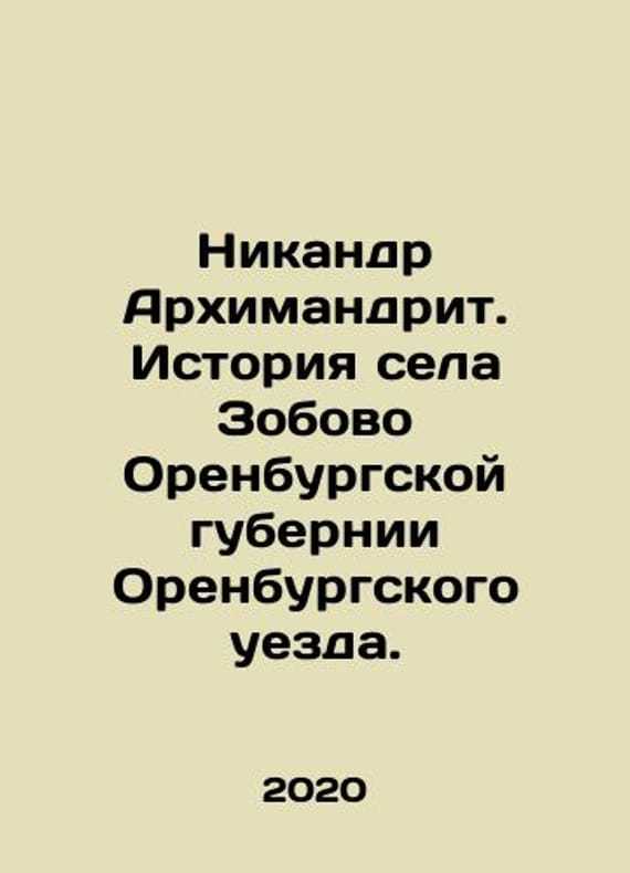 Nikandr Archimandrite. History of the village of Zobovo in the Orenburg province of the Orenburg district. In Russian /Nikandr Arkhimandrit. Istoriya sela Zobovo Orenburgskoy gubernii Orenburgskogo uezda. Church Life: Pastors, Events and People Simferopol N.Oryanda 2020. 288 p. We have thousands of titles and often several copies of each title may be available. Please feel free to contact us for a detailed description of the copies available. SKUalb3280b1a37679f58d.