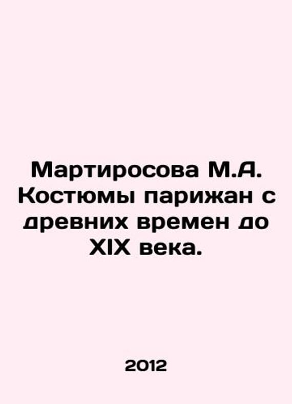Martirosova M.A. Costumes of Parisians from ancient times to the nineteenth century. In Russian /Martirosova M.A. Kostyumy parizhan s drevnikh vremen do XIX veka. Series: Culture and Traditions. M. White City. Sunday Day, 2012. 114p. We have thousands of titles and often several copies of each title may be available. Please feel free to contact us for a detailed description of the copies available. SKUalb32952d133ffe2ab3.
