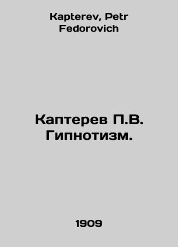 Kapterev P.V. Hypnotism. In Russian /Kapterev P.V. Gipnotizm. M.: Printing House of G. Lissner and D. Sobko, 1909. 204s. We have thousands of titles and often several copies of each title may be available. Please feel free to contact us for a detailed description of the copies available. SKUalb32a2ee38fa12769c.