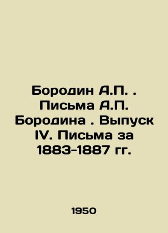 Borodin A.P. Letters by A.P. Borodin. Issue IV. Letters for 1883-1887 In Russian /Borodin A.P. Pisma A.P. Borodina. Vypusk IV. Pisma za 1883-1887 gg. Complete collection, critically checked with the original texts. with the foreword and note by S. A. Dianin M.: L.: State Museum, Publishing House, 1950, 477 p. We have thousands of titles and often several copies of each title may be available. Please feel free to contact us for a detailed description of the copies available. SKUalb32ad97351f9d8640.