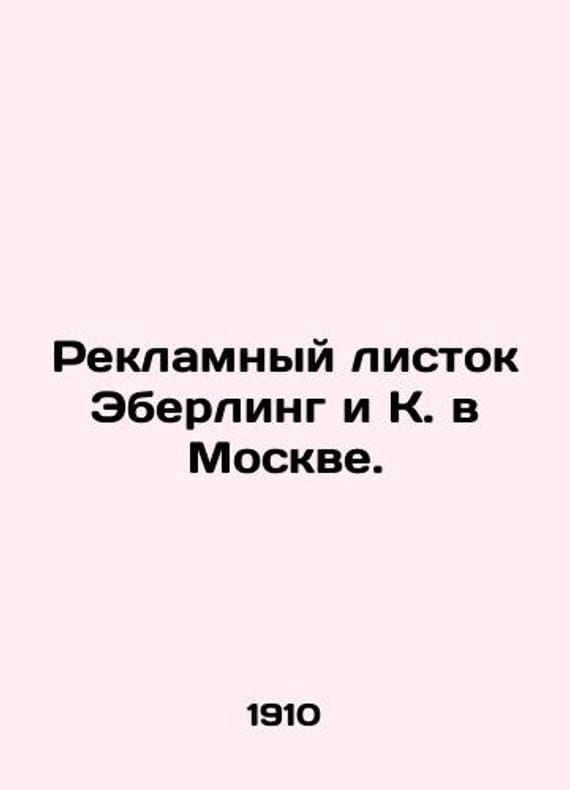 Advertising leaflet Eberling and K. in Moscow. In Russian /Reklamnyy listok Eberling i K. v Moskve. Construction of factory buildings, mills and warehouses. 1910. 4s. 33x23 sm. We have thousands of titles and often several copies of each title may be available. Please feel free to contact us for a detailed description of the copies available. SKUalb32d3d05453fd37e7.