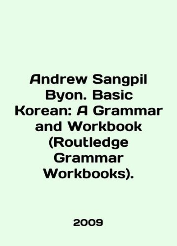 Andrew Sangpil Byon. Basic Korean: A Grammar and Workbook (Routledge Grammar Workbooks). In English /Andrew Sangpil Byon. Basic Korean: A Grammar and Workbook (Routledge Grammar Workbooks). 2009. Korean Language Tutorial. Korean Language. This book presents twenty-five individual grammar points, covering the core material which students would expect to encounter in their first year of learning Korean. Grammar points are followed by examples and exercises which allow students to reinforce and consolidate their learning. Basic Korean is suitable for both classes use as well as independent study. We have thousands of titles and often several copies of each title may be available. Please feel free to contact us for a detailed description of the copies available. SKUalb32ed2cab4cbe7bd3.