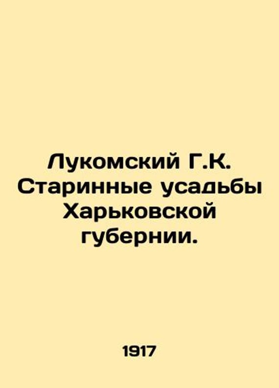 Lukomsky G.K. Old estates of Kharkiv province. In Russian /Lukomskiy G.K. Starinnye usadby Kharkovskoy gubernii. Kharkiv. Saga. 2007. 348p. We have thousands of titles and often several copies of each title may be available. Please feel free to contact us for a detailed description of the copies available. SKUalb6c3aaeefd1cc40d4.
