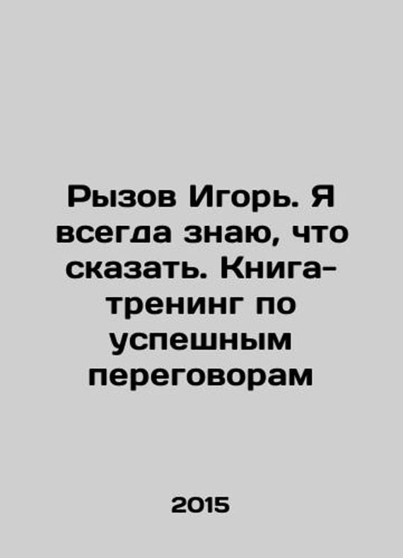 Igor Ryzov. I always know what to say. Training book on successful negotiations In Russian /Ryzov Igor. Ya vsegda znayu, chto skazat. Kniga-trening po uspeshnym peregovoram Series: Top Business Awards 2015.We have thousands of titles and often several copies of each title may be available. Please feel free to contact us for a detailed description of the copies available. SKUalb333d745c0e9685e4.