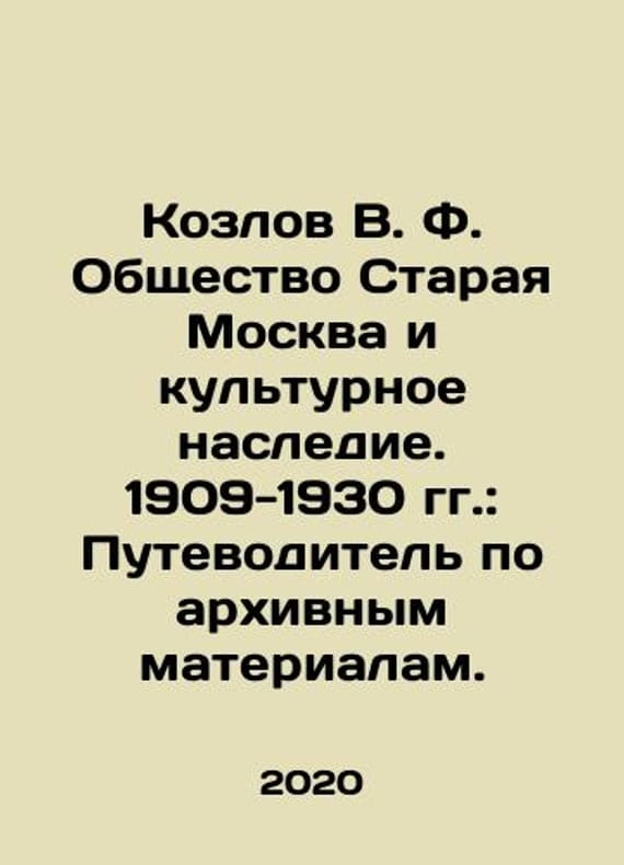 Kozlov V. F. Old Moscow Society and Cultural Heritage. 1909-1930: A Guide to Archival Materials. In Russian /Kozlov V. F. Obshchestvo Staraya Moskva i kulturnoe nasledie. 1909-1930 gg.: Putevoditel po arkhivnym materialam. Series: Materials on the Protection and Use of Historical and Cultural Monuments of Moscow and Moscow Region. We have thousands of titles and often several copies of each title may be available. Please feel free to contact us for a detailed description of the copies available. SKUalb337e7bb038c16b21.