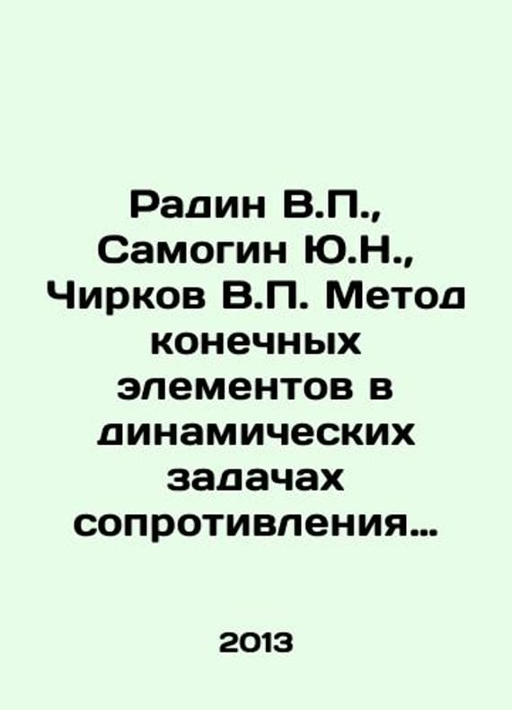 Radin V.P., Samogin Yu.N., Chirkov V.P. The finite element method in dynamic problems of material resistance. In Russian /Radin V.P., Samogin Yu.N., Chirkov V.P. Metod konechnykh elementov v dinamicheskikh zadachakh soprotivleniya materialov. M. Fizmatlit 2013. 316s. We have thousands of titles and often several copies of each title may be available. Please feel free to contact us for a detailed description of the copies available. SKUalb3390d914e803dc21.