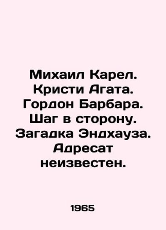 Mikhail Karel. Christie Agatha. Gordon Barbara. Step aside. Endhouses mystery. The addressee is unknown. In Russian /Mikhail Karel. Kristi Agata. Gordon Barbara. Shag v storonu. Zagadka Endkhauza. Adresat neizvesten. The Foreign Detective series. Issue 1. M. Young Guard. 1965.We have thousands of titles and often several copies of each title may be available. Please feel free to contact us for a detailed description of the copies available. SKUalb341816f7062fad5e.