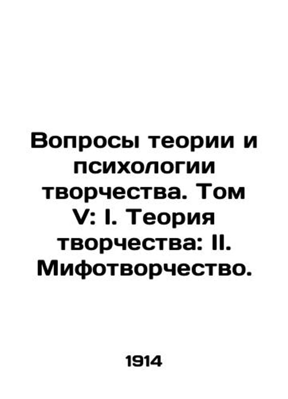 Issues of Theory and Psychology of Creativity. Volume V: I. Theory of Creativity: II. Myth Creativity. In Russian /Voprosy teorii i psikhologii tvorchestva. Tom V: I. Teoriya tvorchestva: II. Mifotvorchestvo. Non-periodical publication published under the editorship of B. A. Lesin. Kharkov, 1914. XVI, 564 p. We have thousands of titles and often several copies of each title may be available. Please feel free to contact us for a detailed description of the copies available. SKUalb347ab767488311e3.