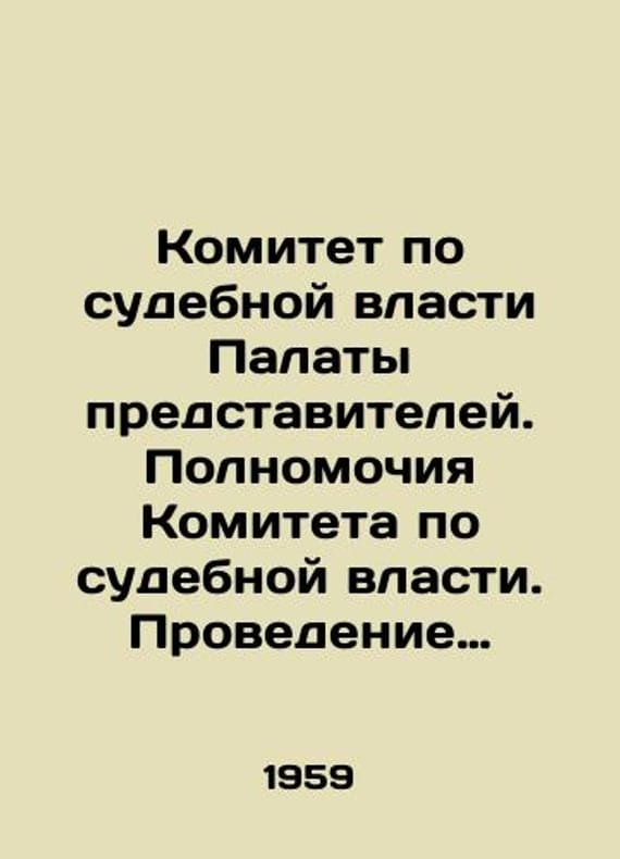 House Judiciary Committee. Powers of the Judiciary Committee. Investigations and Investigations. Department of Justice. In Russian /Komitet po sudebnoy vlasti Palaty predstaviteley. Polnomochiya Komiteta po sudebnoy vlasti. Provedenie rassledovaniy i sledstviy. Departament pravosudiya. Washington. Office of the US Government. 1959. 382 p. We have thousands of titles and often several copies of each title may be available. Please feel free to contact us for a detailed description of the copies available. SKUalb3491bd6145e30d85.