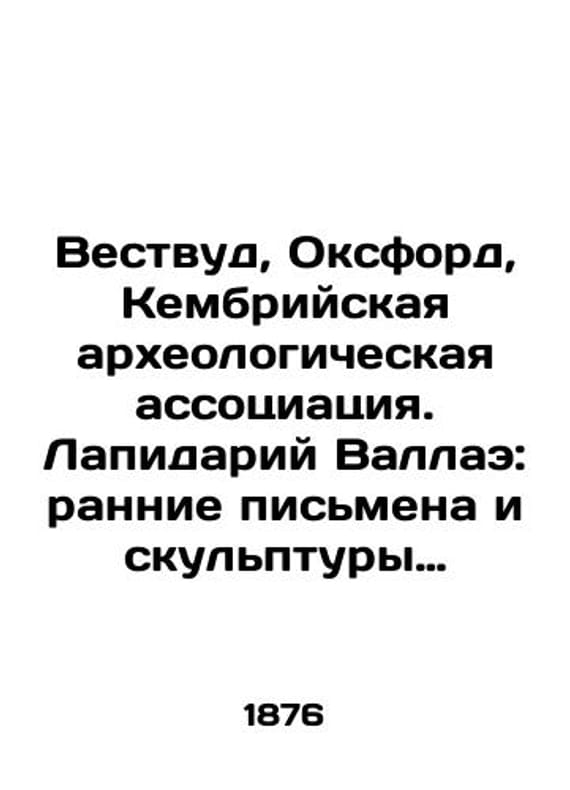 Westwood, Oxford, Cambrian Archaeological Association. Lapidarium Vallae: early letters and sculptures of Welsh stones identified and described by J. O. Westwood. In Russian /Vestvud, Oksford, Kembriyskaya arkheologicheskaya assotsiatsiya. Lapidariy Vallae: rannie pismena i skulptury kamney Uelsa, ocherchennye i opisannye Dzh.O. Vestvudom. Oxford. University of Oxford Typographs. 1876, Very Lapidarium Vallae: Early Writing and Sculptures of Welsh Stones, designed and described by J. O. Westwood. Oxford, printed in the Universitys printing press for the Cambrian Archaeological Association, 1876-1879. Extremely rare beautifully illustrated antique book. 101 full engravings, including coloured ones. 28x23x5 sm. We have thousands of titles and often several copies of each title may be available. Please feel free to contact us for a detailed description of the copies available. SKUalb349a5f23a60c8b53.
